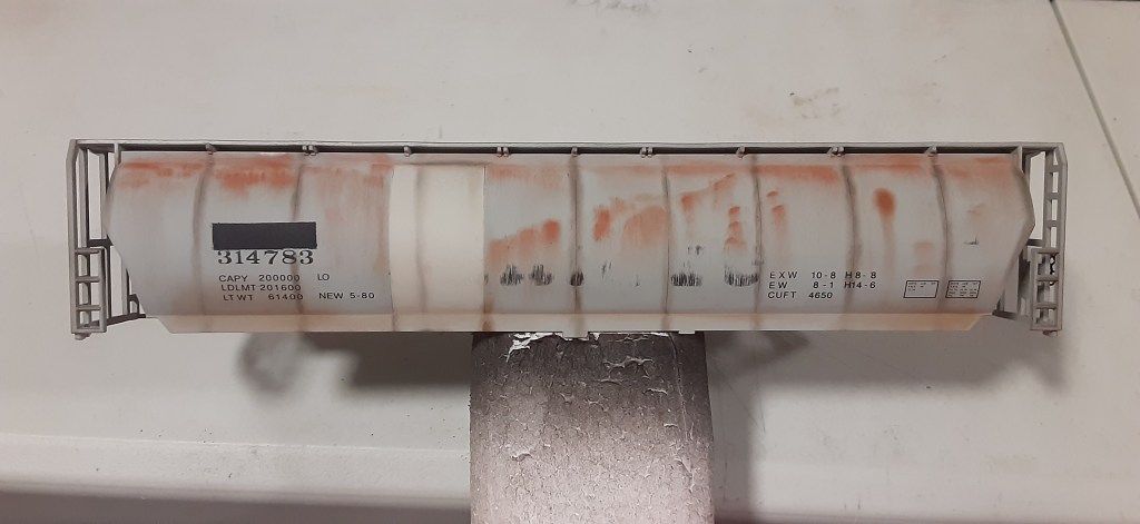 Here’s an overview of how I weathered and patched a basic Bachmann cylindrical 4 bay hopper as a local RCPE (Rapid City, Pierre & Eastern) road car for my club’s HO scale layout.