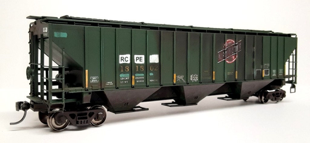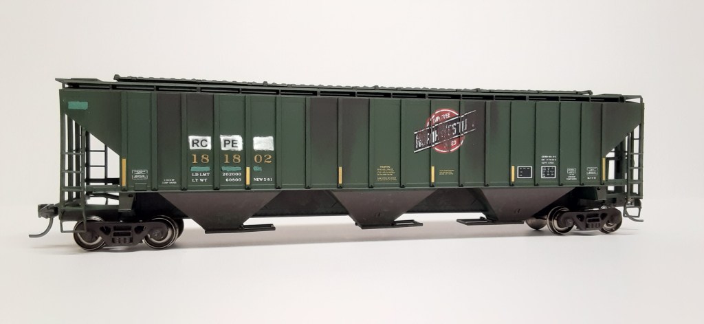A quick backstory on these Accurail cars – A few of my local modeler friends and fellow club member put in the time to have Accurail produce a minimal run of these hoppers in ex-CNW factory patched for RCPE (Rapid City, Pierre & Eastern – formerly DME) which is our local road. Knowing the folks behind this made this project a little more special.